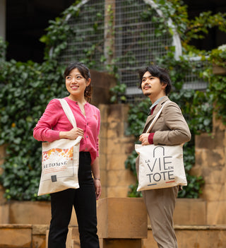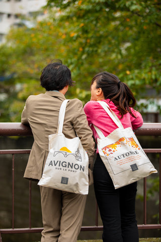 私たちは東京在住のフランス人カップルです。フランスを愛する全ての人のためにトートバッグを作りました。日本で売られているフランス語の商品はほとんど意味のないフレーズが多いことに気が付きました。その為、私たちフランス人がデザインした本物のフランス語の商品を高品質で提供しています。